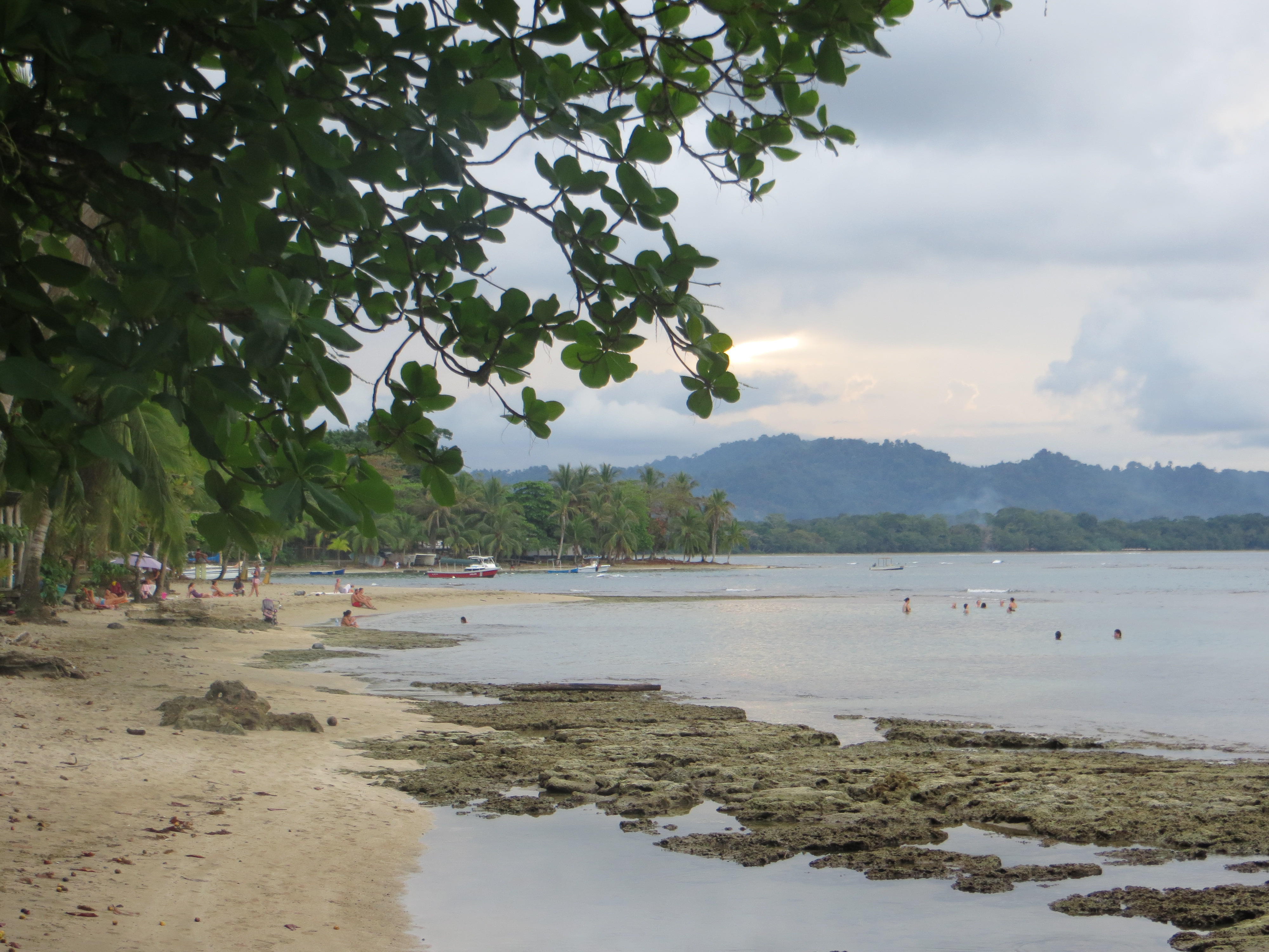 We wound our way down the road to Playa Cocles where David swam to the small island off the coast and the rest of us read, laid out, and eventually got into the water to play around for a while as the sun started to go down behind the trees.