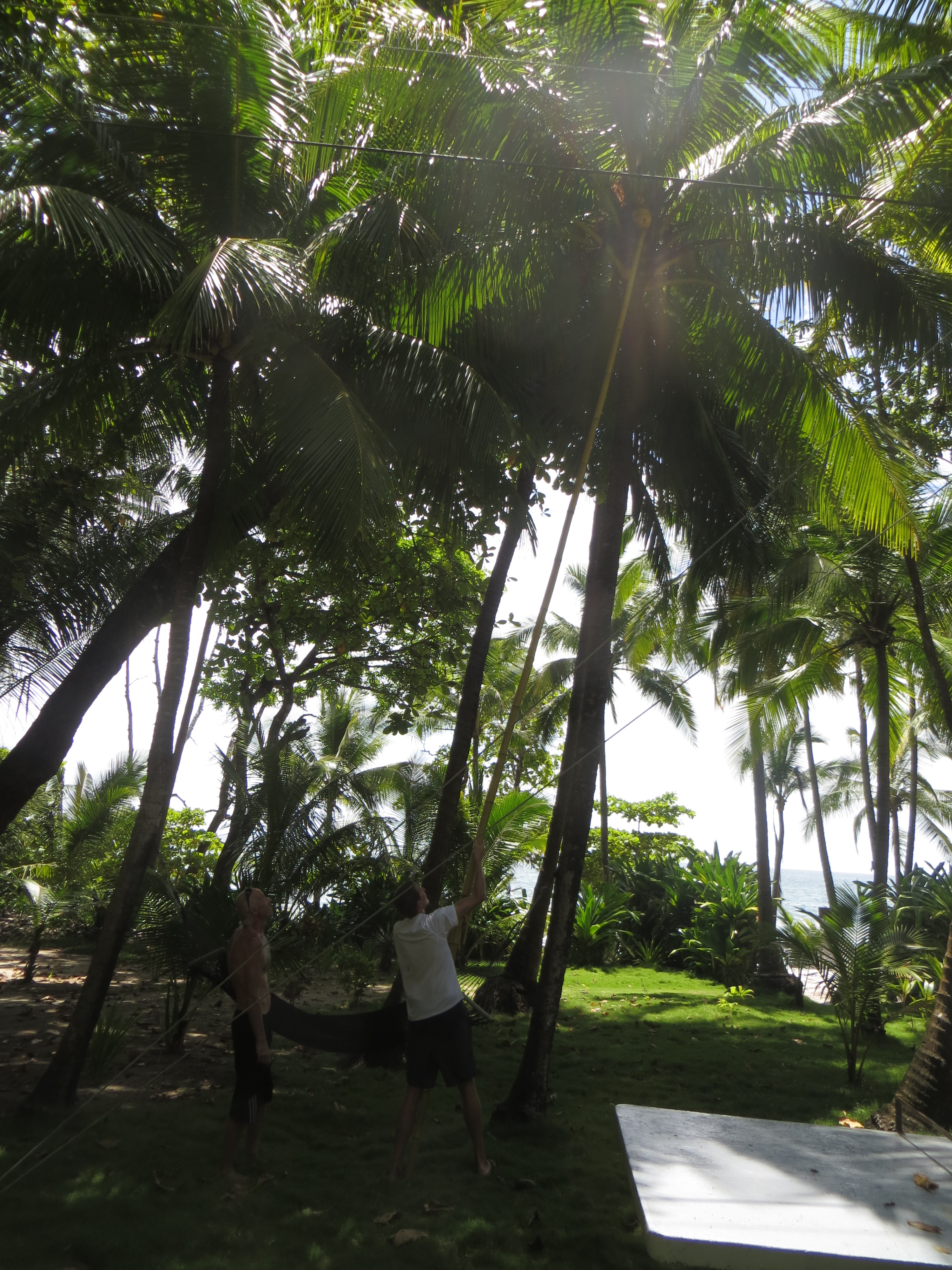 Jason learned the art of knocking a coconut out of a tree and cutting it open with a machete. We’ve played ping pong on the concrete table in the middle of the property and we’ve read too– all kinds of books at all times of the day. And cooked. We’ve made pupusas, granola bars, patacones [plantain chips], and have been enjoying every moment. Today would be the perfect day for chocolate chip cookies, with all this rain, but unfortunately Costa Rican grocery stores don’t believe in carrying chocolate chips [what kind of place is this?!].
