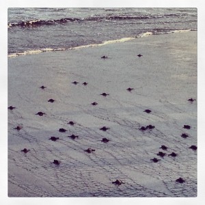 We’ve been able to really enjoy the outdoors here, though, the last couple of days. We went on a couple hikes– one failed attempt and one almost successful. We saw baby turtles being released out into the water. Turtles are one of my most favorite animals– certainly my most favorite sea animal– so to see that was so incredible! We spent our afternoon yesterday body boarding in the humungous waves down at the beach near our place, and came back with only a few bumps and bruises.