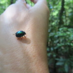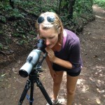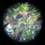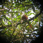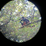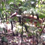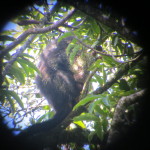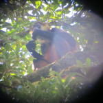 As we moved on throughout the trail we saw the birds that Melvin heard earlier– Three-wattled Bell Bird that has a fu manchu-like mustache, Common Bush Tanager, White-tipped Dove, and a ton of hummingbirds. We also saw a Mexican Hairy Porcupine sleeping in a tree– something I never would have spotted with my own eyes. In the same tree we saw a rustling in the branches and saw a White Nose Coatimundi [part of the raccoon family] foraging some fruit. We saw a giant rodent called an Agouti scampering along the path and later a Red Brocket Deer that is smaller than the North American deer we’re used to with two small horns pointing towards its tail, which was explained to us that they won’t get caught in the low-hanging branches & vines throughout the forest then. We even saw a family of Spider Monkeys swinging through the trees– a type of monkey we hadn’t seen yet in CR!